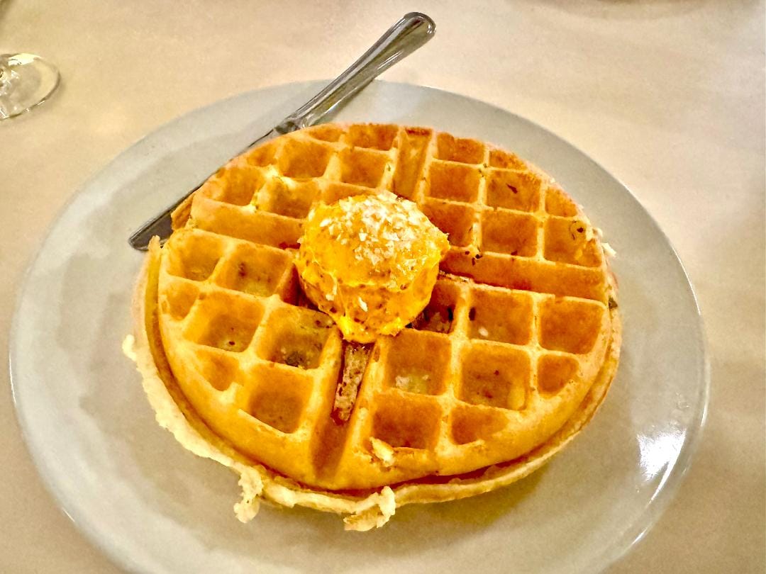 I found the cheerful new Heights venue so invigorating that I immediately started fantasizing about eating Wong's deep-pocketed scallion waffle with gently sweet, can't-get-enough-of-it sambal butter for a late breakfast, parked at the little front counter reserved for walk-ins.