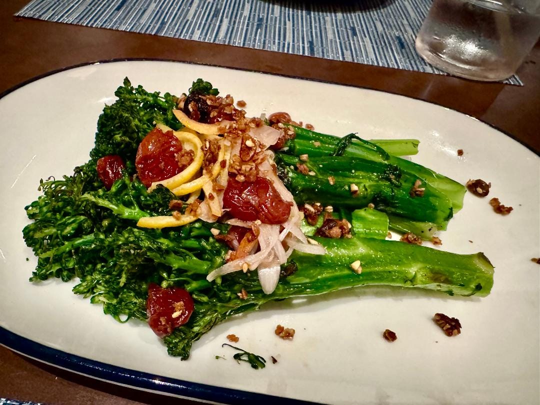 Crisp-tender broccolini had its pleasant bitterness offset with the twinge of preserved lemon rind, agro-dolce drunken cherries soaked in bourbon, verjus and rice vinegar, plus a surprise crackle of house-made granola.