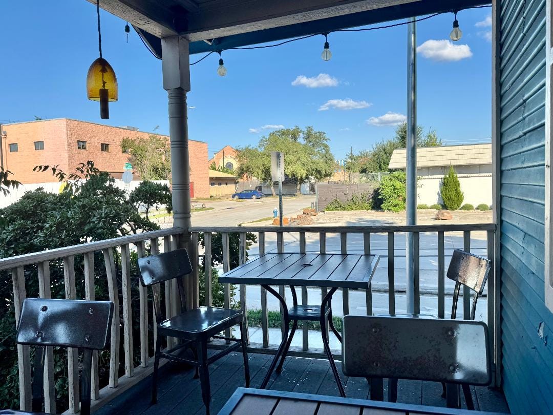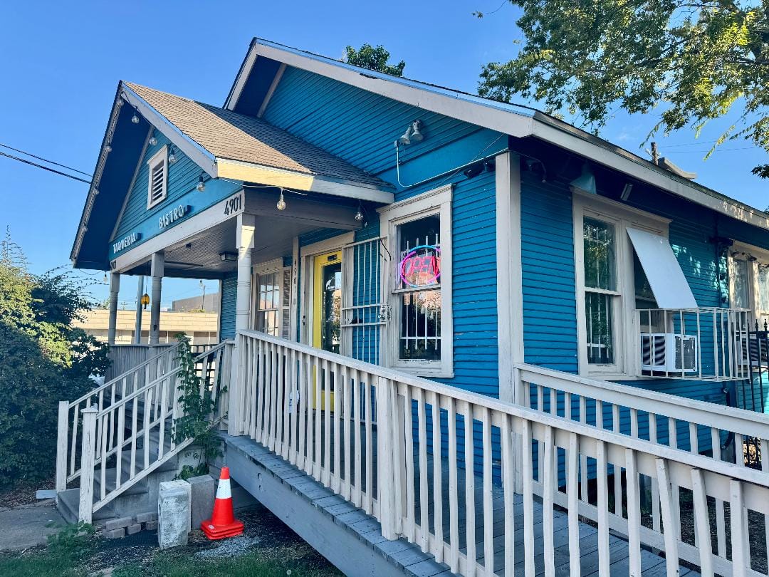 I took my burger and soda out to the old-fashioned front porch, where I dined in breezy, solitary splendor (a fall front was creeping in) with a view of the Rose Street and Durham intersection. The neighborhood's a puro Houston combo of plucky little 20th-century cottages, light industry and commercial structures, with ranks of looming townhouses crowding in from the west.