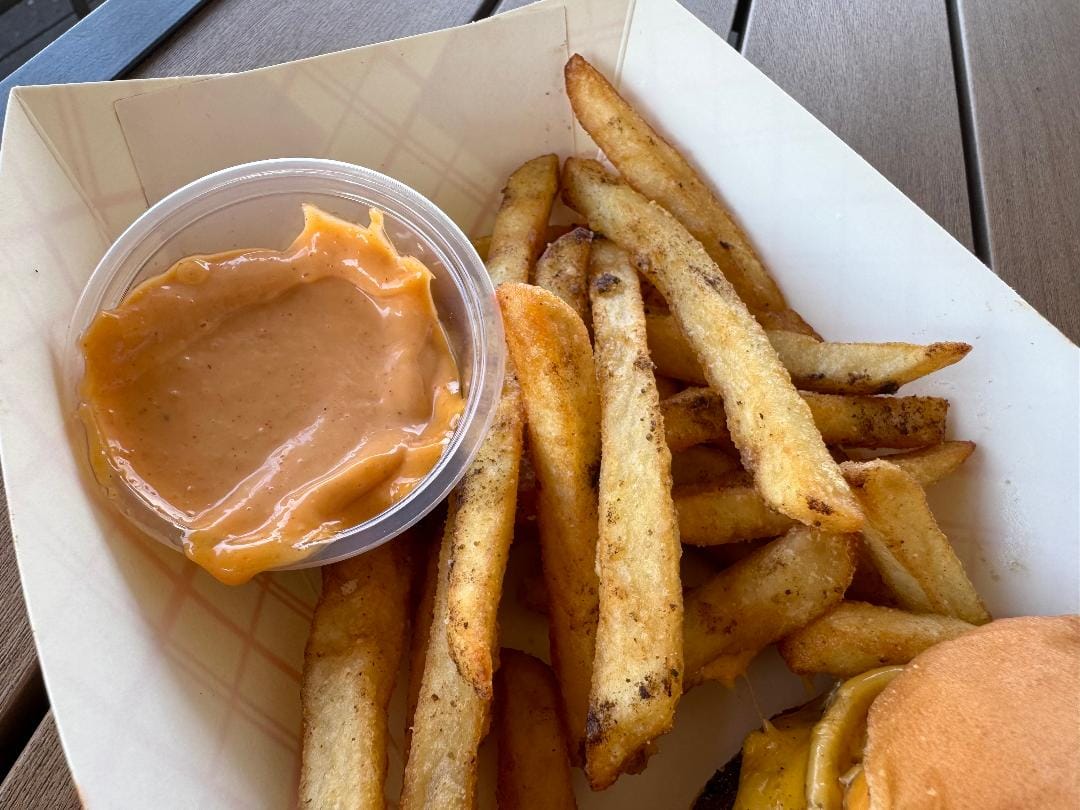 MINUS POINTS: Okay, the skinny, nicely crisp fries had that cottony interior that suggests they started out in a freezer box. Still, they were good of their kind. I kept puzzling over their advertised "magic" seasoning, which looked like dark and dusty patches, but it didn't make enough of an impression to really register. Compared to the burger, and the gripping Awesome Sauce, the fries were just sort of...there.