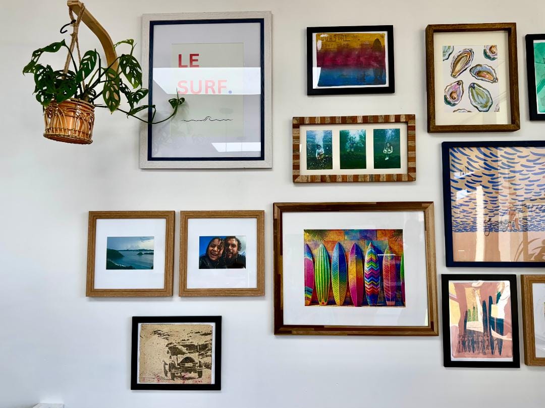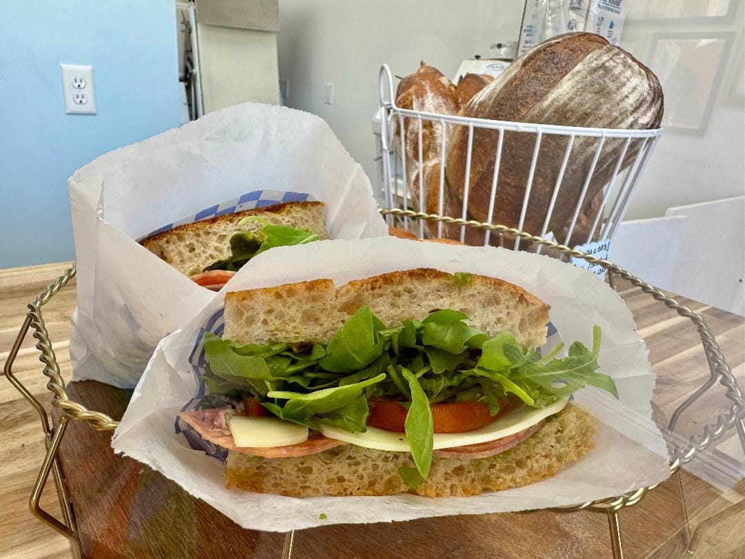 L to R, from top: Focaccia sandwiches, country loaves and demi baguettes at Coastal Bake Shop; Sunday-morning counter at Coastal; Boulangerie signage; plain croissant; Italian sandwich; gallery wall; Coastal Bake Shop. Photos by Alison Cook
