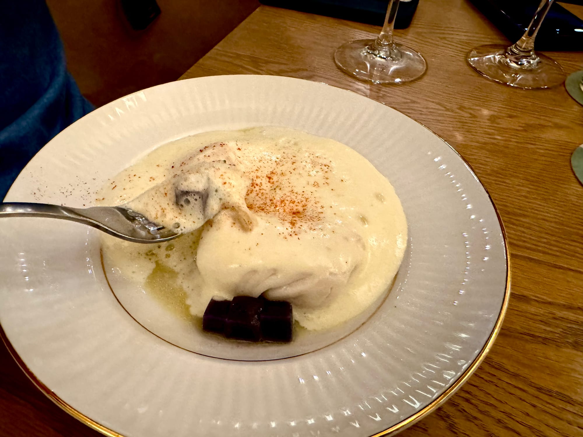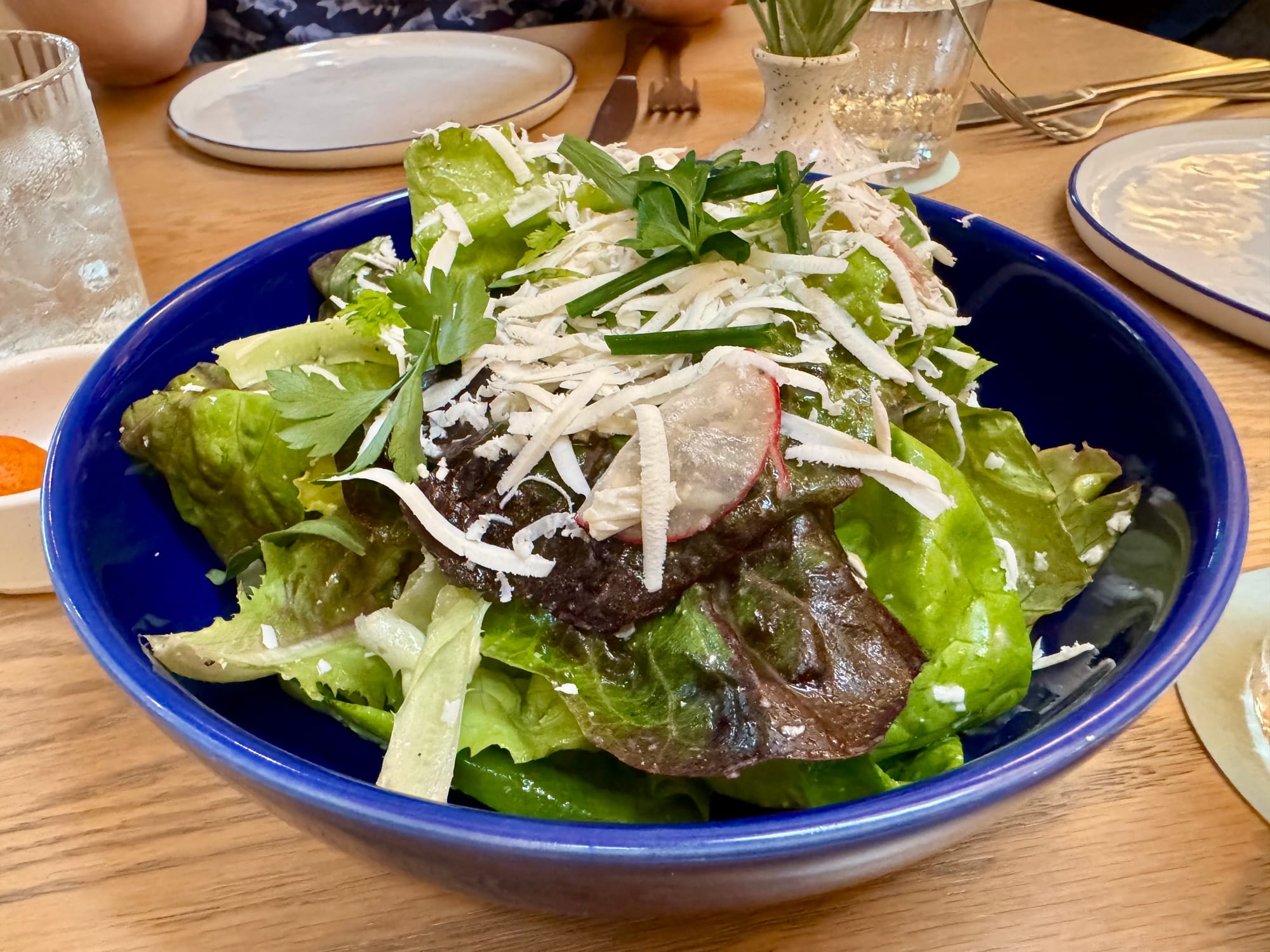 The staff seems uniformly smart and kind. Manager and sommelier Gillian Malone, who came over from March, has put together an interesting wine list, with lots I'd love to order, although I winced to see that a healthy percentage were over my budget.