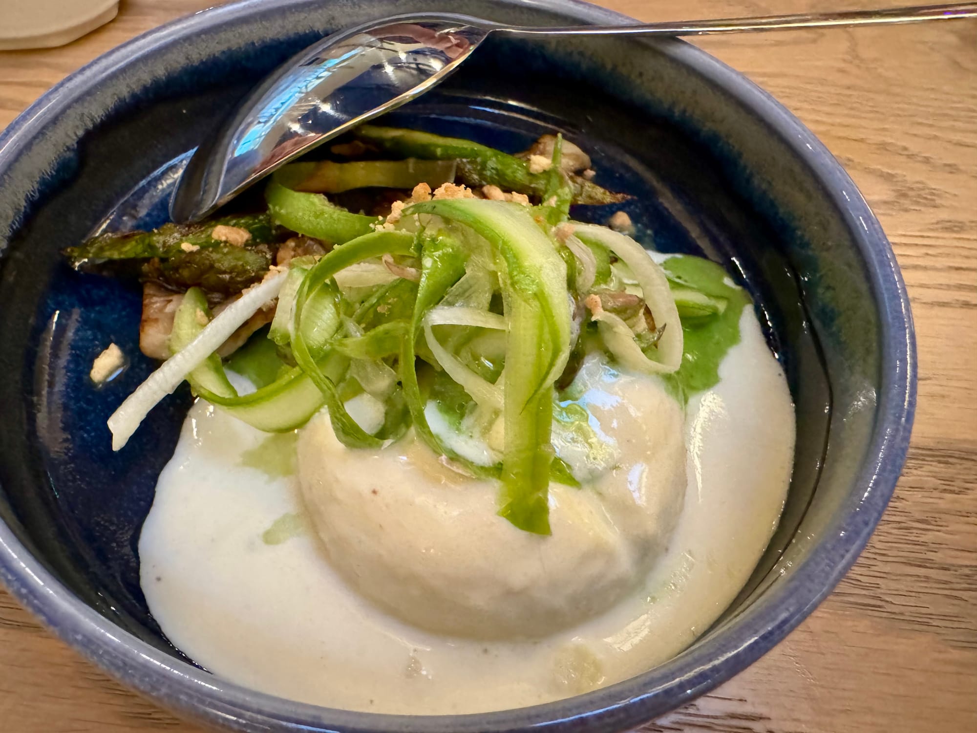 I first had Dauphiné-style ravioli at the late (and lamented by me) Eau Tour in Rice Village. They date from the French Middle Ages, popped up in recent years as a New York trend, and I hope they stick around here. I plan to lobby to have them land on Camaraderie's more casual bar menu, which is served up front and on the patio.